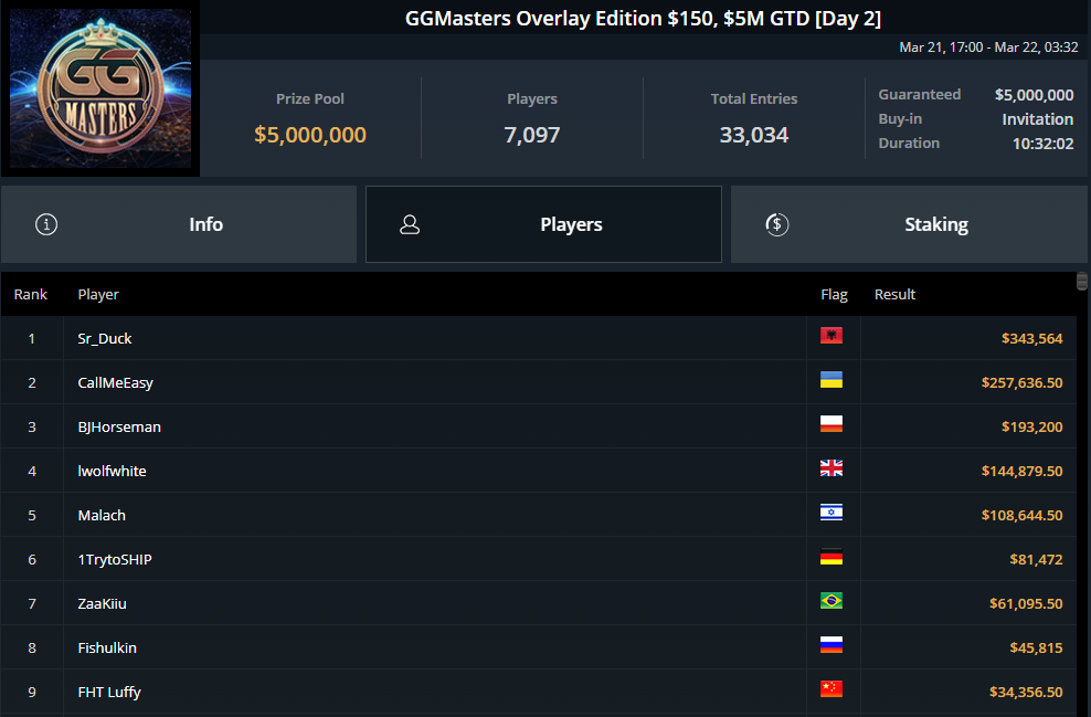 Na ten turniej czekaliśmy od dobrych kilku tygodni. GGpoker postanowiło hucznie obchodzić drugie urodziny swojej sztandarowej serii GGMasters, organizując turniej z pulą 5.000.000$. Co ciekawe operator od początku zakładał, że ustalenie wpisowego na poziomie 150$ oraz formatu turnieju „freezeout” doprowadzi do tego, że wystąpi overlay na kilkaset tysięcy dolarów. To jednak nie miało większego znaczenia, liczyła się chęć zrewanżowania się graczom za ich codzienną aktywność w eventach GGMasters.
