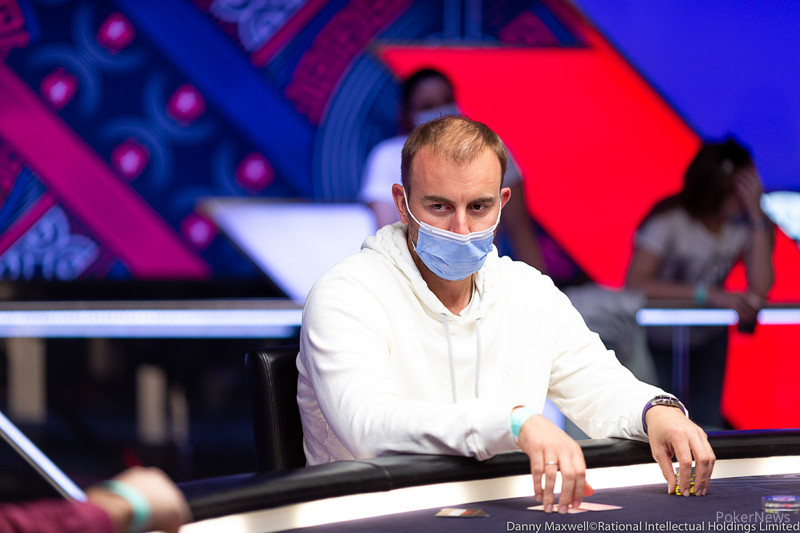 Mikita Badziakouski miał niecałe 4 big blindy, które wylądowały za linią po tym, jak podniósł A2s. Sprawdził go tylko Mateos, który odsłonił AT. Lepsza ręka utrzymała się na boardzie: KKT77.