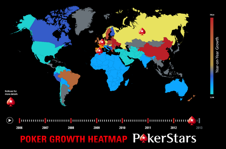 PokerStars zlecił przygotowanie specjalnej mapy, aby śledzić wzrost popularności w danym regionie i aby pokazać gdzie oraz kiedy narodził się pokerowy boom. Według firmy z Wyspy Man, Ameryka Północna nadal cieszy się szybkim wzrostem od 2003 roku, kiedy to bransoletkę w turnieju WSOP Main Event zdobył Chris Moneymaker. Przeprowadzane badania są też cenną wskazówką dla potencjalnych inwestorów. Znawcy branży, którzy mieli przyjemność zapoznania się ze szczegółowymi wynikami uważają, że obecnie najlepszymi miejscami na inwestycje są Europa Wschodnia, Rosja i Brazylia.
