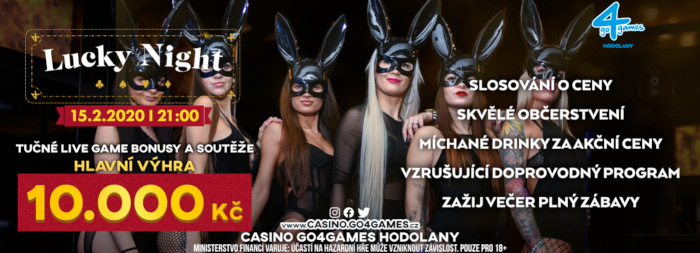 W międzyczasie w kasynie trwać będzie impreza spod znaku Lucky Night, na której ponownie zagoszczą modelki z grupy Zlyart. Na graczy czeka świetna zabawa, drinki, bonusy oraz rywalizacja o pierwszą nagrodę w wysokości 10.000 CZK.