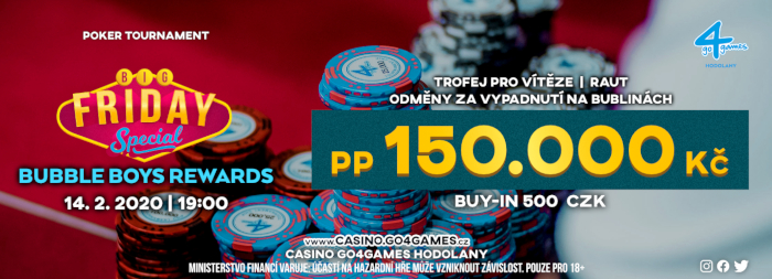 Piątkowy turniej może być doskonałym poligonem doświadczalnym dla graczy początkujących. Niskie wpisowe i nie tak mocna konkurencja jak w przypadku droższych, wielodniowych eventów. Największy pechowiec Friday Special, gracz, który odpadnie jako pierwszy, ale też bubble boy oraz osoba, która jako ostatnia odpadnie przed wyłonieniem składu finałowego stołu, otrzyma wejściówkę na kolejny Friday Special (1.000 CZK).