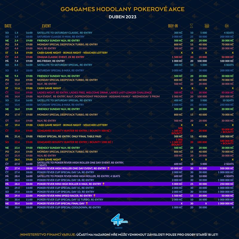 Harmonogram Go4Games Casino Hodolany (kwiecień 2023)