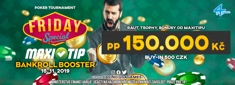 Emocjonujący weekend rozpocznie się już w piątek, od eventu Friday Special Maxtip Bankroll Booster, który w Ołomuńcu zyskał już sobie wielu sympatyków. Wszystko dlatego, że za niewielkie wpisowe można uczestniczyć w grze o niemałe pieniądze oraz, że na graczy czekają dodatkowe atrakcje.