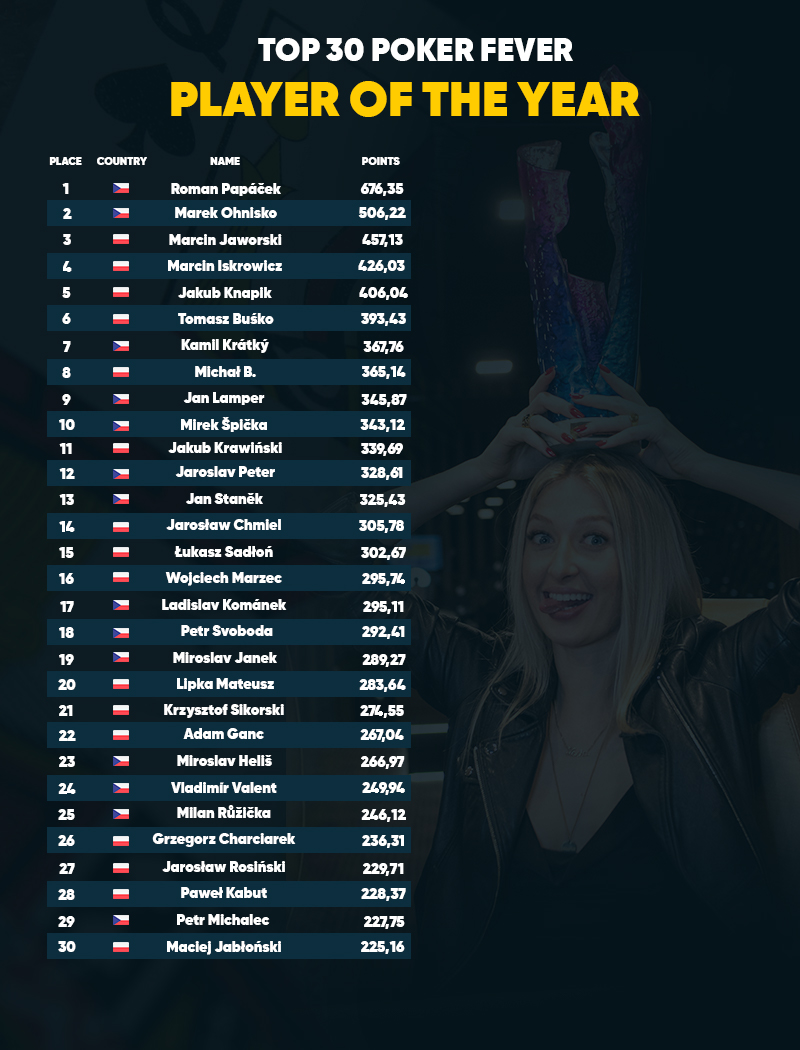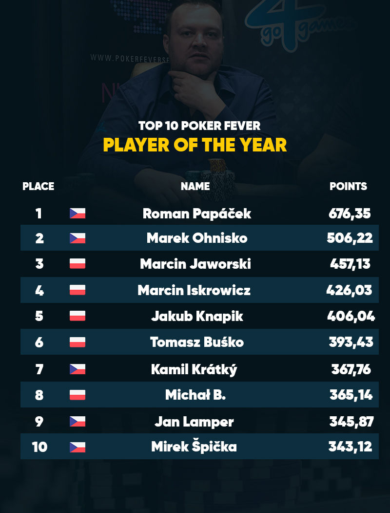 Odjechał pogoni Roman Papáček i jest wielce prawdopodobne, że już nikt nie będzie w stanie go dogonić. Czeski pokerzysta trzykrotnie punktował w trakcie ostatniego festiwalu – w tym wygrał jeden turniej – i dzięki temu umocnił się na prowadzeniu w rankingu.