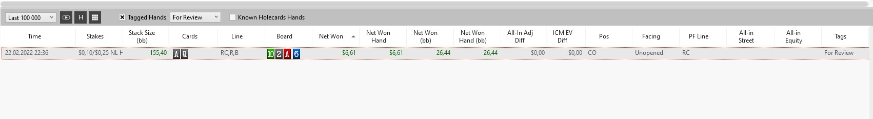 Regularne analizowanie rozdań to jedna z najbardziej skutecznych metod rozwijania pokerowych umiejętności. Dzięki funkcji oznaczania możecie w najprostszy sposób wyselekcjonować te rozdania, które potem będziecie analizowali z dala od stołów: sami, z członkami szkoleniowej społeczności, z solverem. Zdecydowanie polecamy ten sposób nauki!