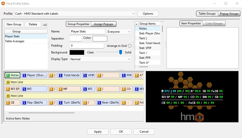 W najprostszej postaci HUD może składać się ze wskazań: VPiP, PFR, 3-bet, Hands. Jeśli jesteście początkującymi graczami, namawiamy Was do wdrożenia takiego okrojonego rozwiązania. Przyjdzie jeszcze czas na to, żeby dołożyć kolejne statystyki. Najpierw poczujcie się swobodnie z podstawami i upewnijcie się że dobrze rozumiecie, co oznaczają poszczególne wskazania, a także, a może przede wszystkim, jak zmienia się Wasza strategia, w zależności od zaobserwowanych anomalii.