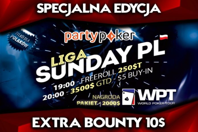 Pierwszy z turniejów głównych, SundayPL – Freeroll, startuje o godzinie 19.00 i jest to turniej darmowy, którego pula nagród wynosi 250 dolarów turniejowych. Turniej dostępny jest dla wszystkich Polaków!