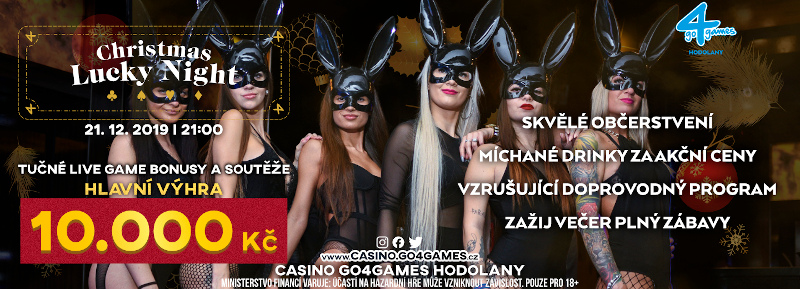 Organizatorzy przygotowali dla Was bonusy na grę na żywo; konkursy, w których do wygrania jest nawet 10.000 CZK; pyszne jedzenie; smaczne drinki oraz obecność modelek z zespołu Zlyart. Impreza Lucky Night jest kwintesencją tego co najlepsze w Go4Games Casino. Zapraszamy do wspólnej zabawy już 21 grudnia.