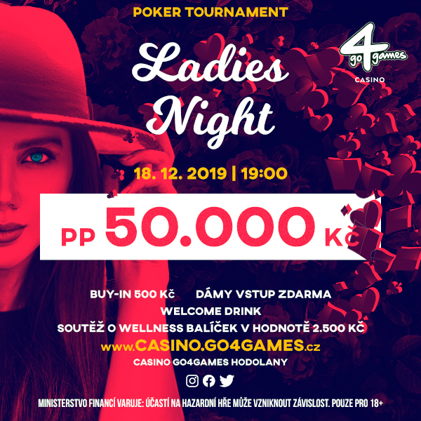 Ladies Night to event specjalny, który na stałe wpisał się w kalendarz cyklicznych wydarzeń w Go4Games Casino. W turnieju można zagrać za 500 CZK, a w puli nagród znajdziecie 50.000 CZK. W grze udział mogą wziąć zarówno panowie, jak i panie, dlaczego zatem jego nazwa to Ladies Night?