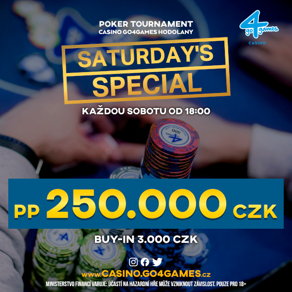 Z pewnością zapamiętacie ostatnią sobotę przed świętami. Wpadnijcie do Go4Games Casino Hodolany na event Saturday Special, w którym walka toczyć będzie się o 250.000 CZK. Wpisowe do tego wydarzenia wynosi 3.000 CZK.