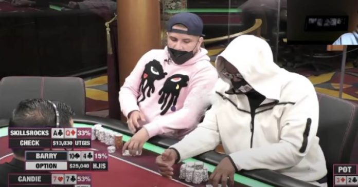 I właśnie w tym miejscu, w trakcie ostatniej cashowej sesji pokazywanej w Internecie na żywo, doszło do złamania regulaminu, chociaż biorąc pod uwagę na straty, jakie poniosły osoby poszkodowane, powinniśmy mówić po prostu o przestępstwie. Niechlubnym bohaterem tej historii jest pokerzysta kryjący się pod nickiem „SkillsRocks„. Zgromadzony materiał video bezsprzecznie świadczy o tym, że ten gracz z premedytacją zerkał w karty swojego rywala, a następnie wykorzystywał tę wiedzę do osiągnięcia korzyści: