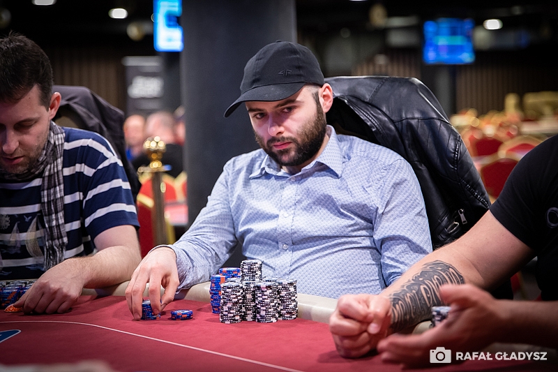 Dwie pozycje wcześniej, na szóstym miejscu, z turnieju odpadł Damian Nagrabecki. W rozdaniu udział wziął jeszcze Alex oraz Bartłomiej Łojko. Czech otworzył, a Damian zagrał all-in z KJ. Wyizolował go drugi Polak, który posiadał AQ, a Alex dołożył resztę swoich żetonów do puli z AK. O rezultacie tego rozdania przesądziły as na turnie oraz dama na riverze. Damian i Alex odpadli z turnieju, a Bartłomiej zbudował gigantyczny stack.