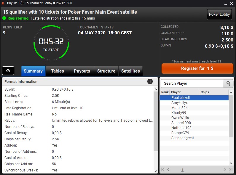 Do lobby PartyPoker powróciły satelity do eventów Poker Fever! Sytuacja kryzysowa z koronawirusem nie jest jeszcze wprawdzie do końca zażegnana, jednak możemy oczekiwać tego, że z tygodnia na tydzień wszystko będzie budzić się z powrotem do życia. Np. wczoraj ogłoszono rychłe otwarcie King’s Casino (więcej informacji – tutaj) Spodziewamy się również tego, że w niedługim czasie gości ponownie zacznie przyjmować Go4Games Casino Hodolany.
