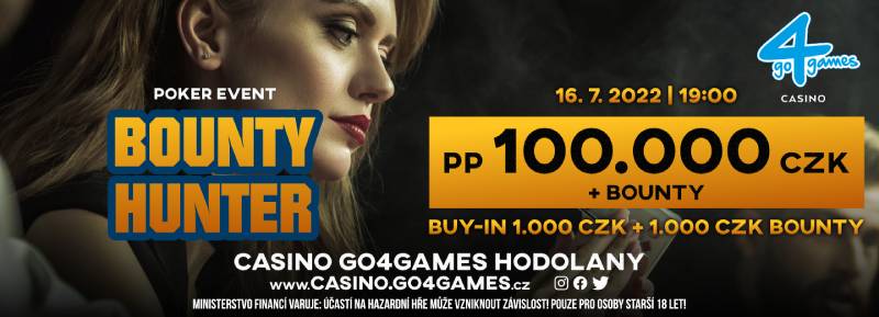 Na początku festiwalu zapraszamy do udziału w Poker Fever Series Bounty CUP, w którym gra toczyć będzie się o 200.000 CZK. Wpisowe w wysokości 2.000 CZK podzielone zostanie na 1.000 CZK do głównej puli nagród oraz 1.000 CZK do puli bounty.