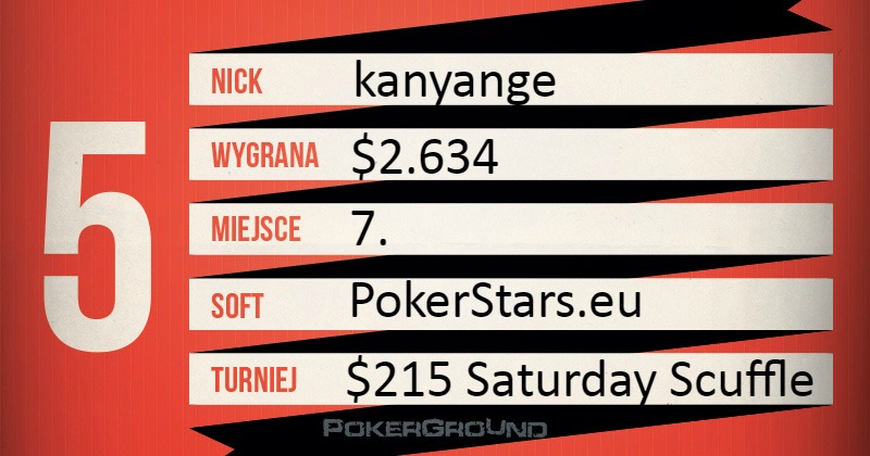 Na szczycie dzisiejszego zestawienia znalazł się skiba84, autor drugiego miejsca w rozgrywce Big o wpisowym $109. Na konto Polaka powędrowało $5.833.