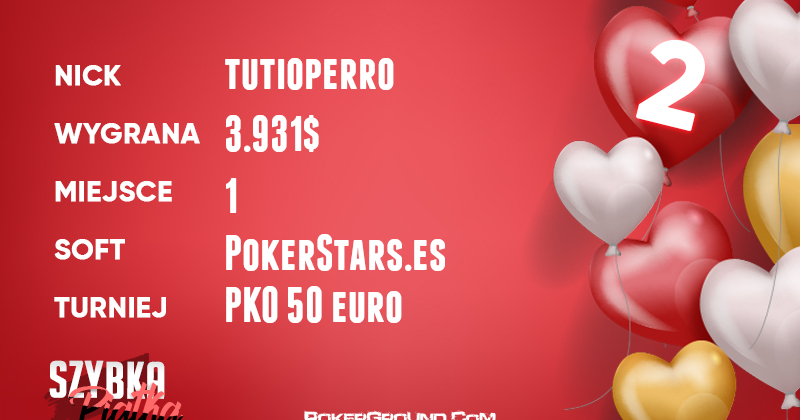 Na drugim miejscu w stawce znalazł się tutioperro (Smart Spin MTT), który na hiszpańskiej stronie PokerStars zwyciężył w evencie PKO 50€ i zgarnął równowartość 3.931$.