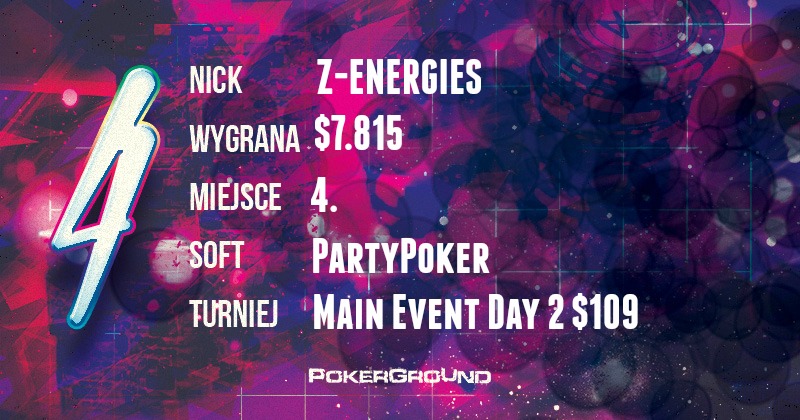 Bardzo dobry występ zaliczyli nasi rodacy w drugim dniu turnieju Main Event toczonym na PartyPoker. Z-ENERGIES zakończył swój udział na czwartymi miejscu, a TypieDajWygrac oczko wyżej. Obaj znaleźli się w dzisiejszym zestawieniu.