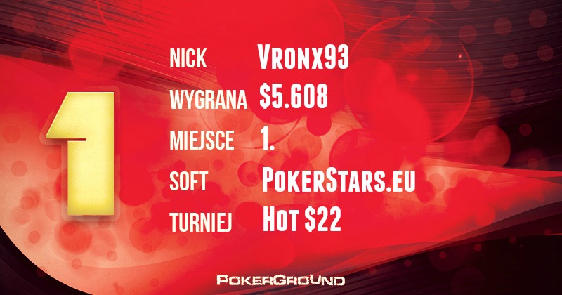 Najlepszym wynikiem dnia wczorajszego może pochwalić się Vronx93. Nie miał on sobie równych w rozgrywce Hot o wpisowym $22. Bankroll naszego gracza powiększył się o $5.608.