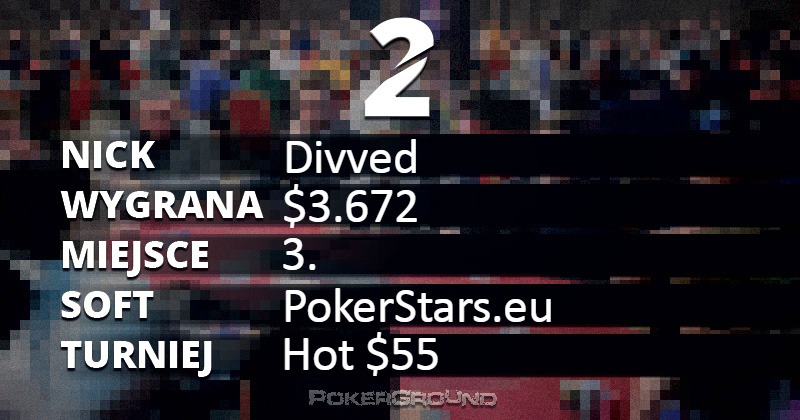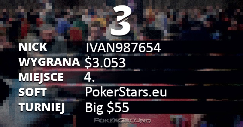 Aż trzech Polaków mieliśmy na finałowym stole turnieju Big $55. Ostatecznie zajęłi oni lokaty od czwartej do szóstej. Najwyżej sklasyfikowany IVAN987654 znalazł się w zestawieniu, natomiast piąty QatareQ ($2.165) oraz szósty MeHowek ($1.535) muszą poczekać na tę szansę.