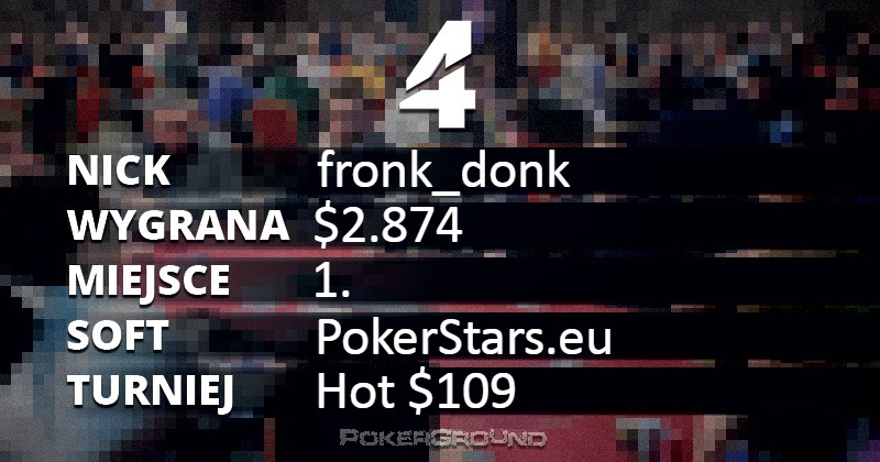 Czwartkowe osiągnięcia naszych graczy zmieściły się w średniej tego tygodnia. Na liście rezultatów, gdzie kryterium wynosi tysiąc dolarów, znalazło się ich piętnaście, co łącznie dało sumę wynoszącą $34.979.