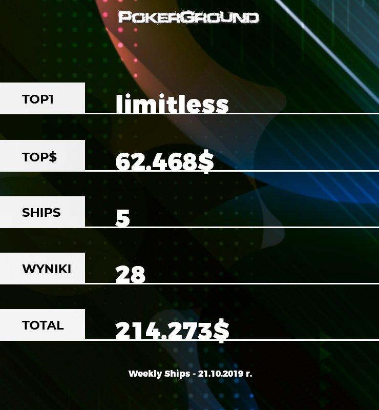 Gwiazdą dzisiejszego zestawienia jest limitless, który zajął dwie pierwsze pozycje w rankingu. Ten gorszy wynik pochodzi z eventu 2.100$ Sunday High Roller. Wiktor zajął w tym turnieju trzecie miejsce i dzięki temu zarobił 21.300$.