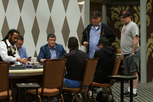 Jeśli oglądaliście wywiad z Leonem Tsoukernikiem, to już wiecie, że King’s Casino zorganizowało specjalną strefę na WSOP, gdzie odbywają się gry na wysokie stawki. W dniu otwarcia strefy chodziła tam gra na limitach 500$/1000$ NL. Przy stole można było zobaczyć: Dana Colmana, Antonio Esfandiariego, Brandona Stevensa, Briana Rasta, Igora Kurganova, Tony’ego G oraz samego Leon Tsoukernika z jego protegowanym, Martinem Kabrhelem.