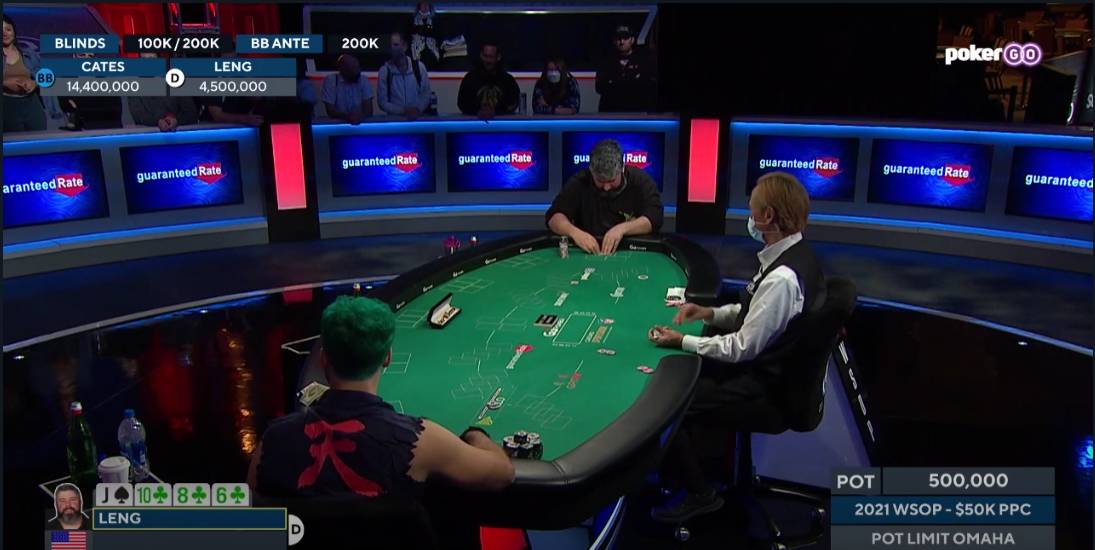 Najciekawsze rozdanie finału? Bardzo proszę. Gra odbywa się w odmianie Limit Hold’em, a Cates jest na skraju eliminacji, gdy w grze pozostaje trzech zawodników. Cates ma KQ i otwiera, a Leng sprawdza z A5. Spada flop: A7J. C-bet i call. Turn to 9 – zostaje przeczekany z obu stron. Na riverze spada K i Leng stawia zakład i zostaje przebity przez „Junglemana” all-in. Po namyśle Leng wyrzuca swoją rękę i odsłania top parę. Cates pokazał swoje KQ i „eksplodował” z radości. Jak sam mówi po finale: „Było to jedno z tych rozdań, które zmieniło jego życie”…