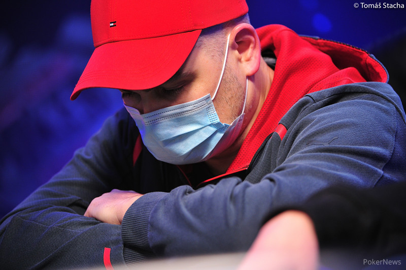 W heads-upie Francuz startował z uprzywilejowanej pozycji: miał przewagę odrobinę większą niż 2:1. Niestety dla niego nie nacieszył się tym prowadzeniem zbyt długo. Czech tylko zlimpował AK przed flopem, a Francuz zagrał raise. Gulas oznajmił 3-bet, a Francuz – po przeliczeniu stacków – zagrał za wszystko. Call. Spadł board: J63K5 i mieliśmy zmianę na pozycji lidera.